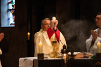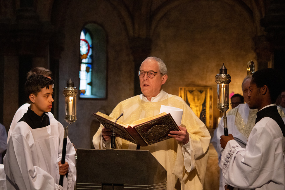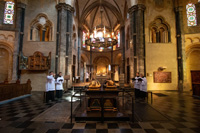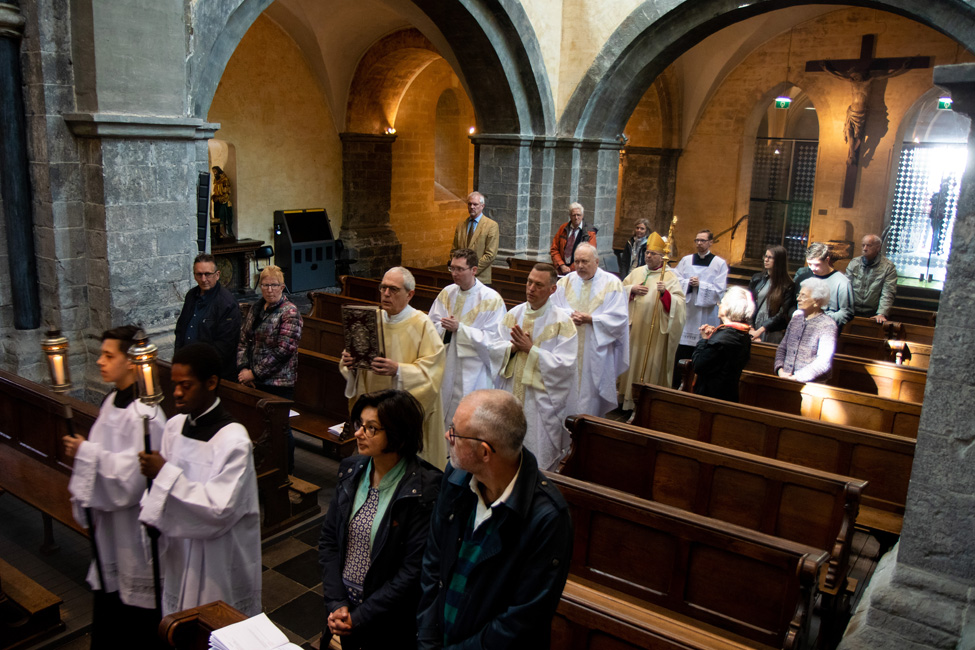 In een prach­tige en sfeer­volle Munster­kerk te Roermond vond zater­dag 11 mei 2019 de jaar­lijkse leden­dag plaats van de Vereni­ging voor Latijnse Li­tur­gie. Een mooie gelegen­heid om Mgr. Harry Smeets te fotograferen die hoofd­cele­brant was bij de Eucha­ris­tie­vie­ring. Con­ce­le­branten waren pastoor Cor Mennen, pastoor Schil­der en kape­laan Brian van de Mortel.