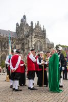 Ruim 250 gildebroeders- en zusters die zijn aangesloten bij de Noord-Brabantse Federatie Schuttersgilden (NBFS) hebben zondag 26 juni een vaandelgroet gebracht aan de Sint-Jan van ’s-Hertogenbosch die dit jaar haar achtste eeuwfeest viert.