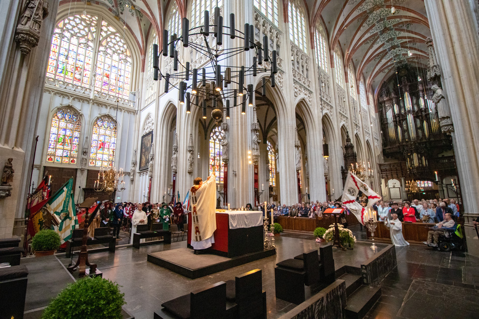 Om 10.00 uur was de intocht en volgde een feestelijke Eucharistieviering. Daarna werd op de Parade, naast de kathedraal, een kleurrijke vaandelgroet gebracht. In de tuin aan de noordkant van de kathedraal maakten we een groepsfoto en de festiviteit werd afgesloten aan de overkant van de straat, in Huis73 - ook wel bekend als de bibliotheek.